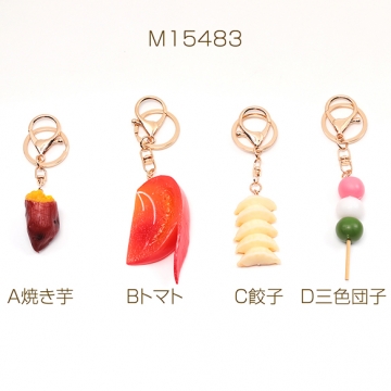食品サンプルキーホルダー 焼き芋 トマト 餃子 三色団子 食べ物 ミニチュア 全4種(1ヶ)