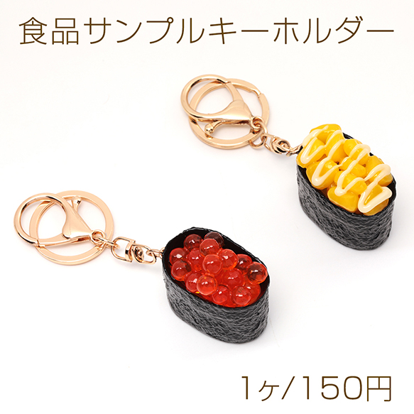 食品サンプルキーホルダー コーンマヨ イクラ 軍艦 寿司 食べ物 ミニチュア 全3種(1ヶ)