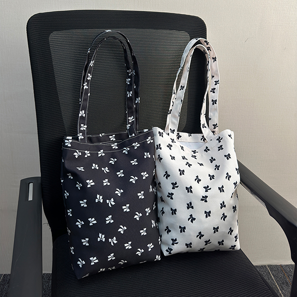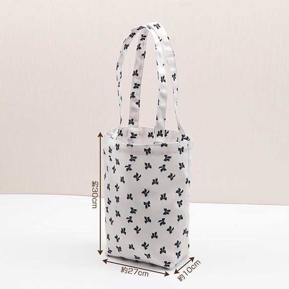 トートバッグ 縦型 リボン柄 手さげカバン サブバッグ マチあり キャンバス かばん 約10×27×30cm(1ヶ)