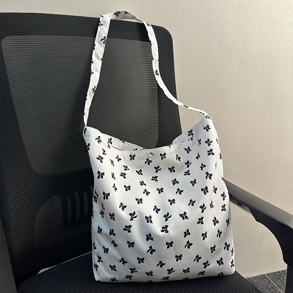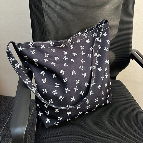 トートバッグ 大容量 ボタン付き A4・B4サイズも入る 大きめかばん リボン柄 マチあり 約12×36×42cm(1ヶ)