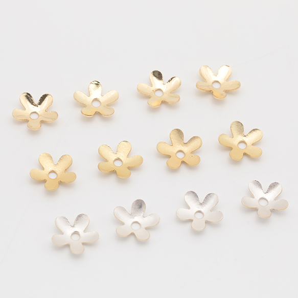 メタルフラワーパーツ ミニ 花びら 中心に穴あり 五弁花 ビーズキャップ 花座パーツ メタルパーツ 約7mm(15ヶ)