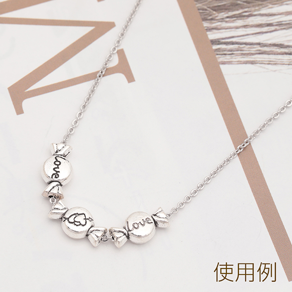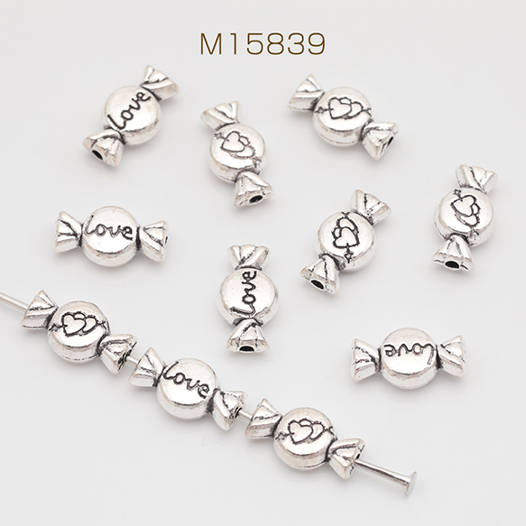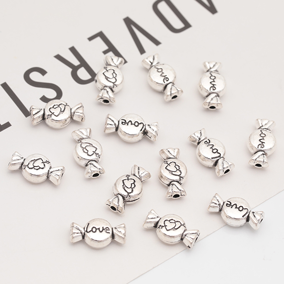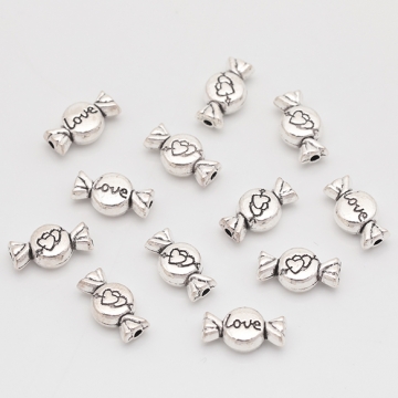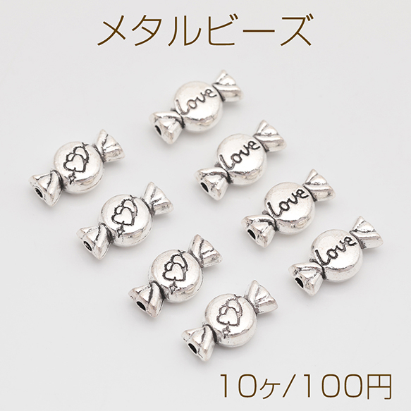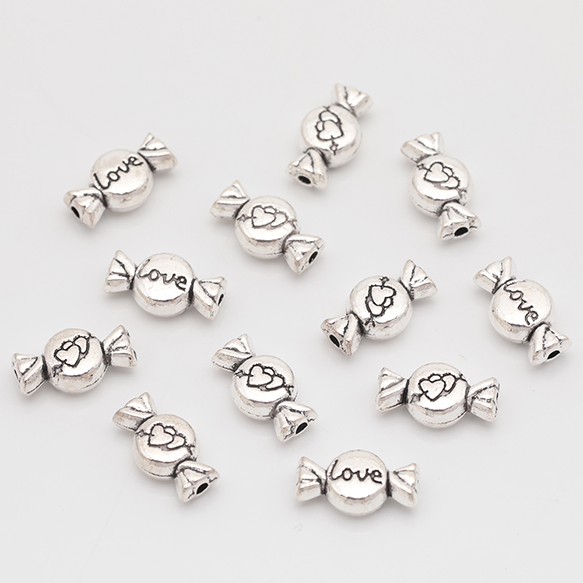 メタルビーズ キャンディ LOVE ハート模様 アンティークシルバー メタルパーツ 約6×11mm(10ヶ)