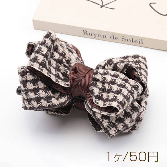 バナナクリップ リボン チェック柄 ブラウン 秋冬 おしゃれ 髪留め 髪飾り ※訳ありサービス品 返品不可(1ヶ)