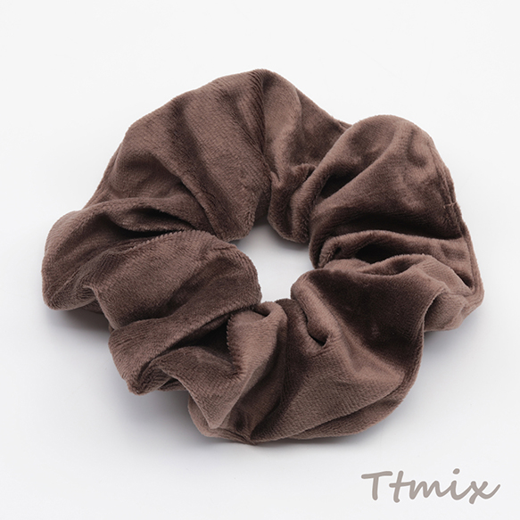 シュシュ ベルベット ブラウン 無地 おしゃれ 髪留め 髪飾り ヘアゴム ※訳ありサービス品 返品不可(1ヶ)