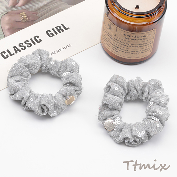 シュシュ スパンコール シルバー ヘアゴム 髪留め 髪飾り ヘアアクセサリー ※訳ありサービス品 返品不可(1ヶ)