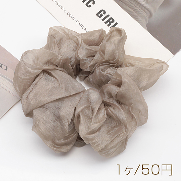 シュシュ 光沢感 グレージュ ヘアゴム 髪留め 髪飾り ヘアアクセサリー ※訳ありサービス品 返品不可(1ヶ)