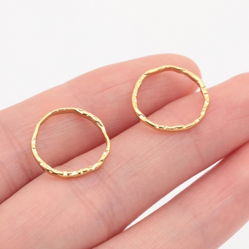 ステンレス製メタルフレームパーツ 不規則ラウンド型 リングパーツ メタルパーツ 14KGP 約14.5mm(1ヶ)