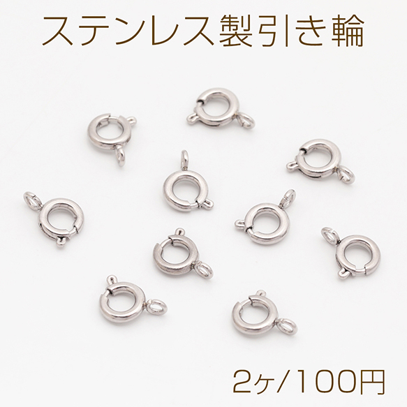 ステンレス製引き輪 スプリングクラスプ ブレスレットやネックレスの制作におすすめ シルバーカラー 接続金具 約5mm(2ヶ)