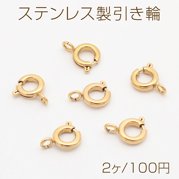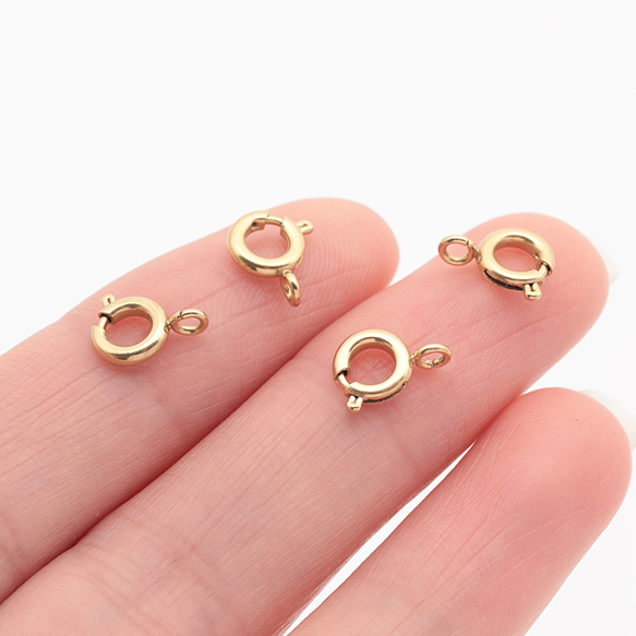 ステンレス製引き輪 スプリングクラスプ ブレスレットやネックレスの制作におすすめ 14KGP 接続金具 約6mm(2ヶ)