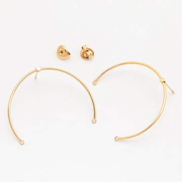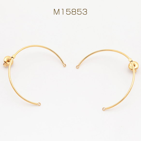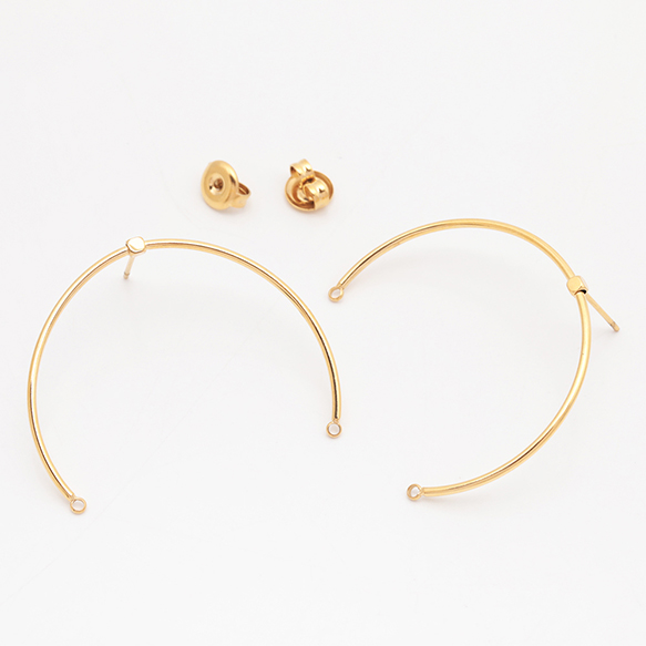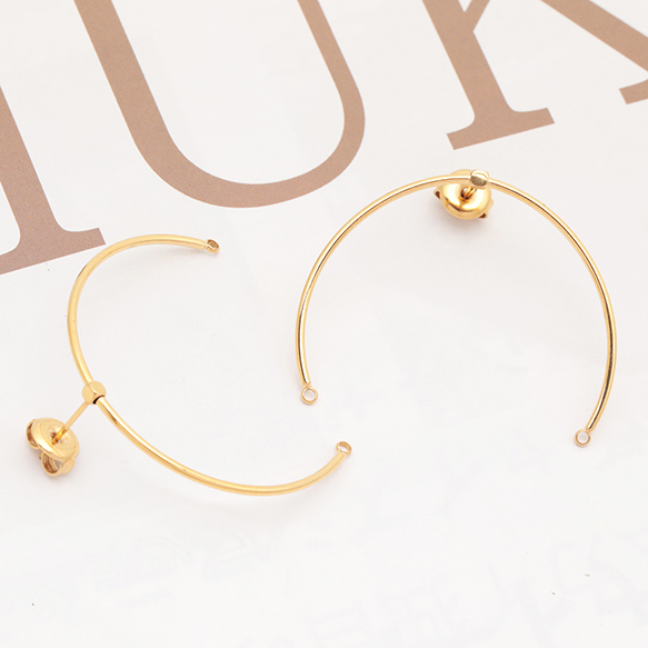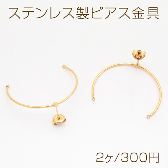 ステンレス製ピアス金具 C字 下向き 2カン付き 14KGPゴールドメッキ 約1.2×36mm(2ヶ)