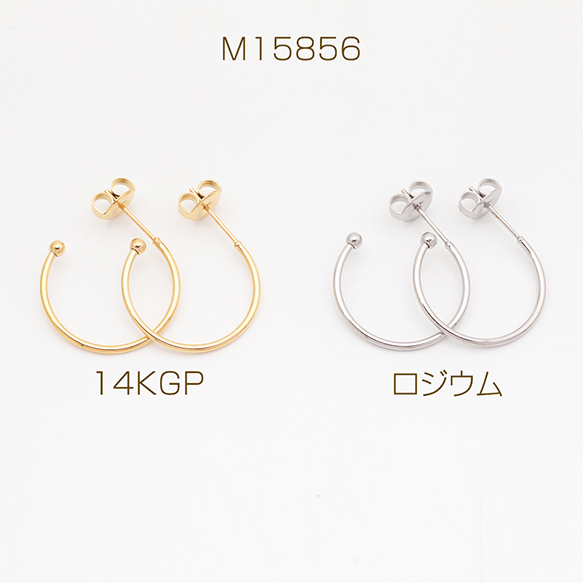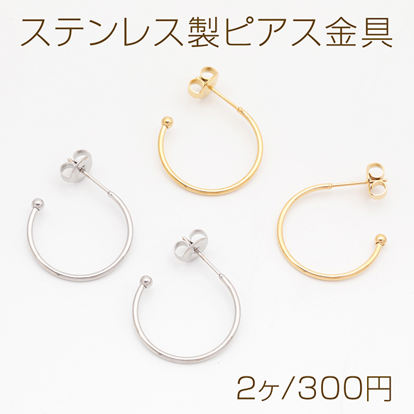 ステンレス製ピアス金具 C字 横向き カン無し 14KGPゴールドメッキ 約1.2×20mm(2ヶ)