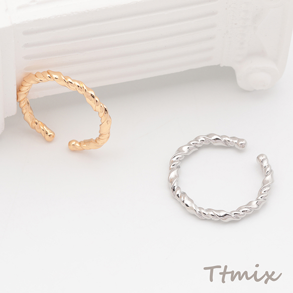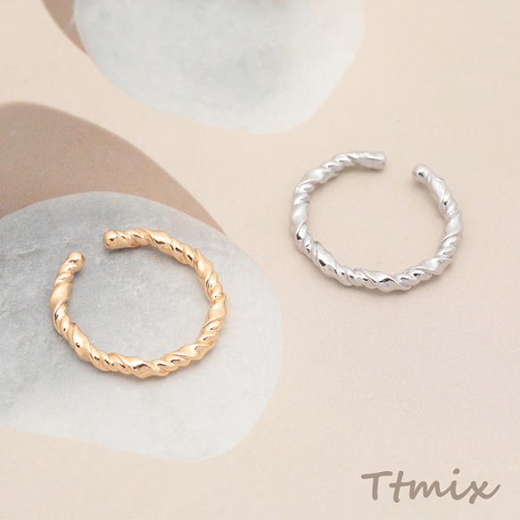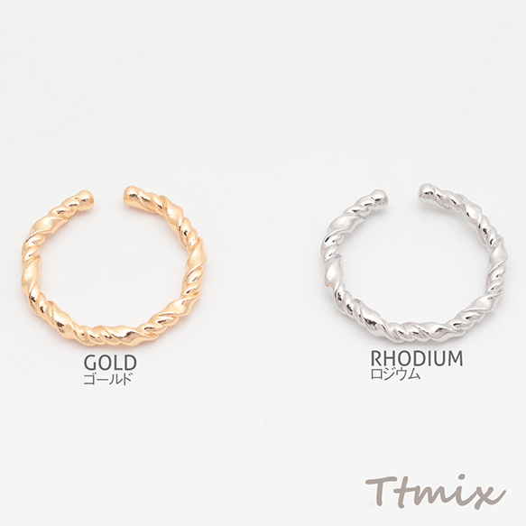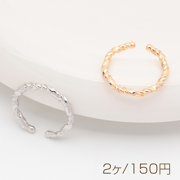 デザインリング ツイスト オープンリング ゴールド/ロジウムカラー 13号内径約17mm(幅約2.5mm)(2ヶ)