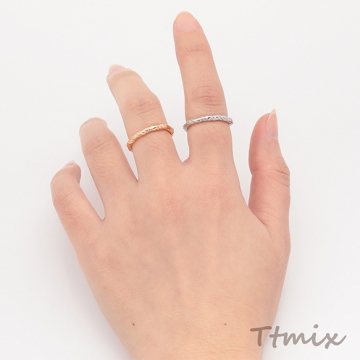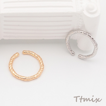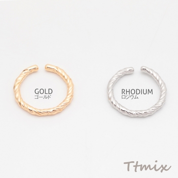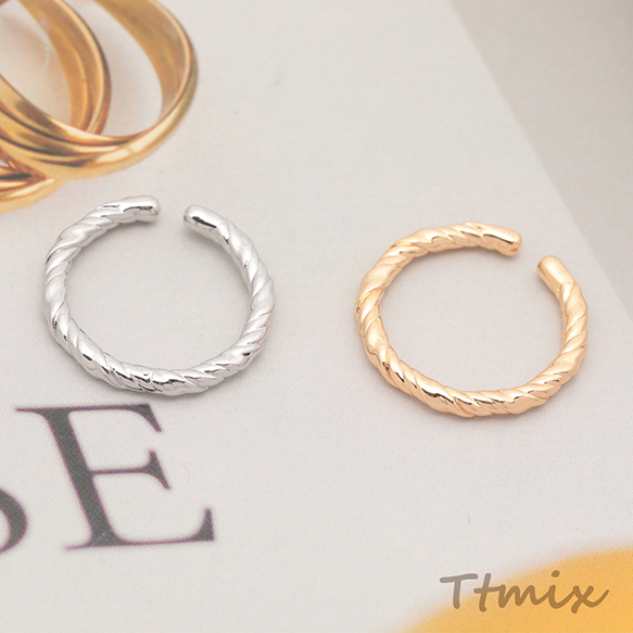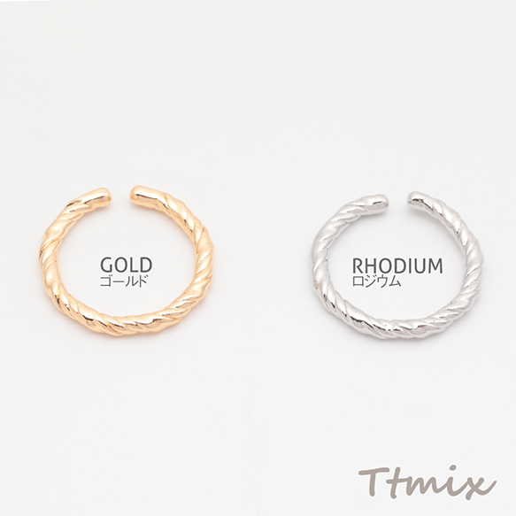 デザインリング 丸みのあるツイスト オープンリング ゴールド/ロジウムカラー 13号内径約17mm(幅約2.5mm)(2ヶ)