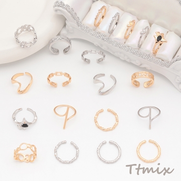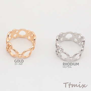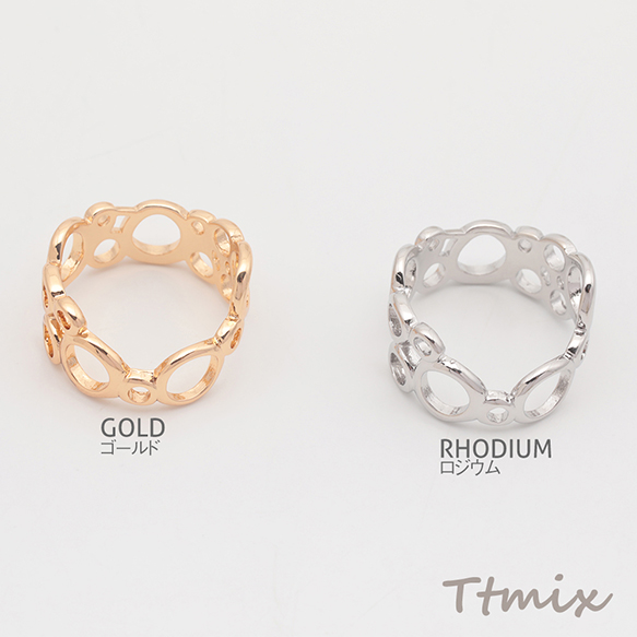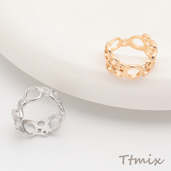 デザインリング 不規則透かし型 メタルリング ゴールド/ロジウムカラー 10号内径約16mm(幅約9mm)(1ヶ)
