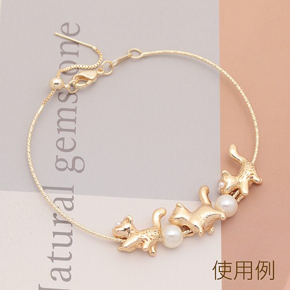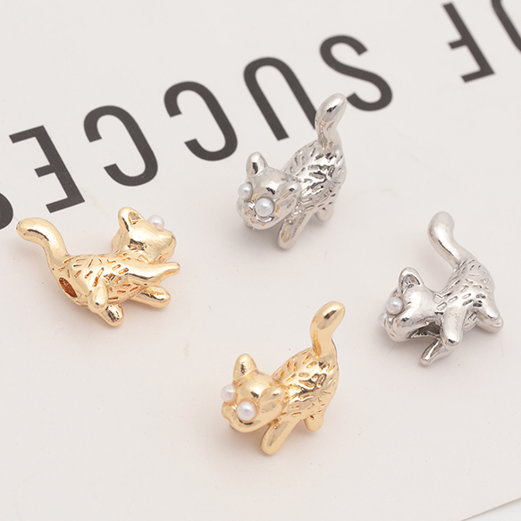スペーサービーズ ABSパール付き ネコ こねこ 猫 横向き おさんぽ 立体 メタルビーズ 約13×13mm(6ヶ)