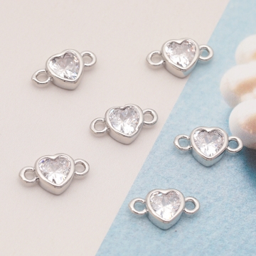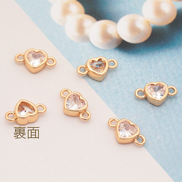 コネクターチャーム ハート ジルコニア 接続金具 連結パーツ コネクターパーツ 約6×11mm(2ヶ)