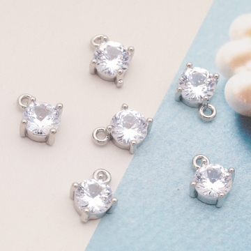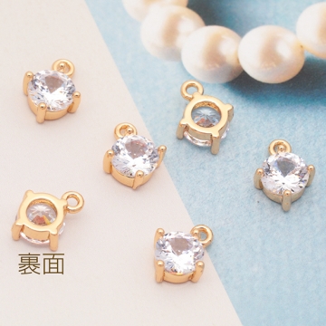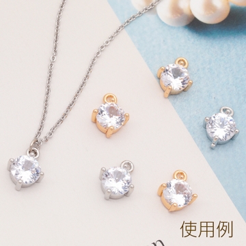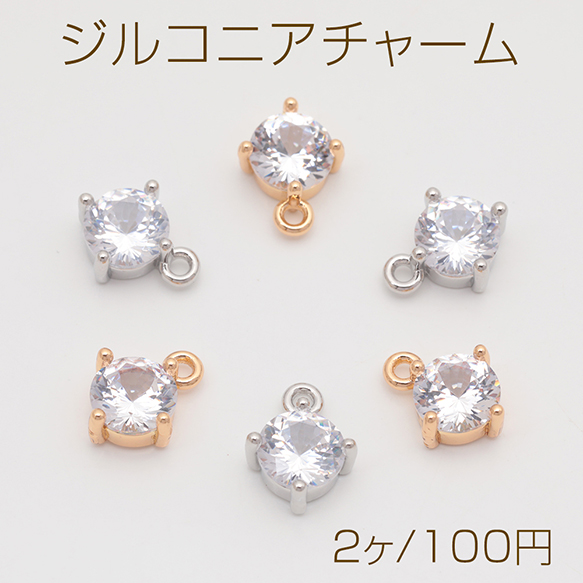 ジルコニアチャーム ラウンド 一粒タイプ ジルコニア ストーン付き メタルチャーム 約8×10.5mm(2ヶ)