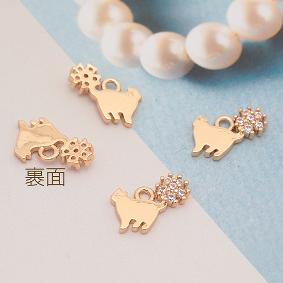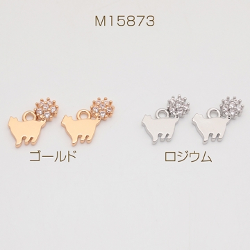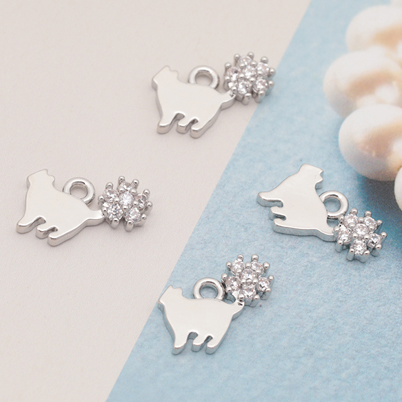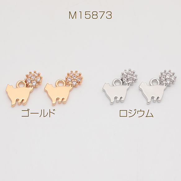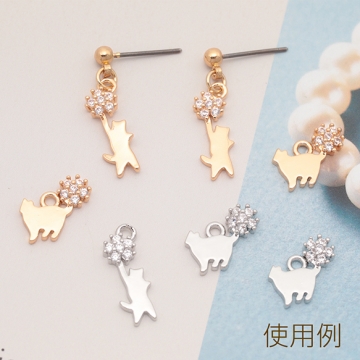 ジルコニアチャーム ネコ こねこ 猫 横向き ラインストーン付き メタルプレートチャーム 約10×12mm(2ヶ)
