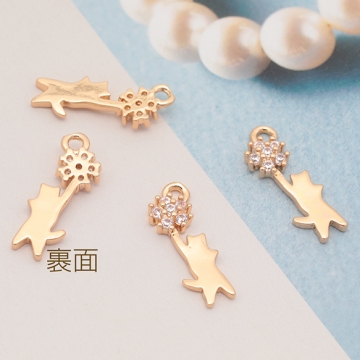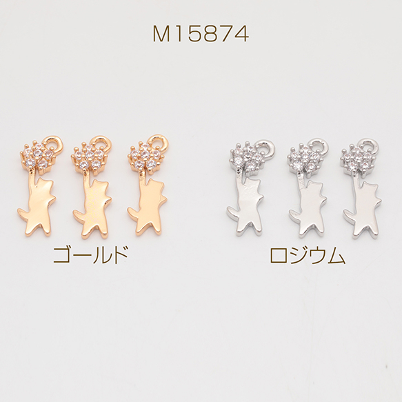 ジルコニアチャーム ネコ こねこ 猫 縦伸び ラインストーン付き メタルプレートチャーム 約5×17mm(2ヶ)
