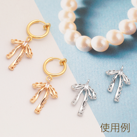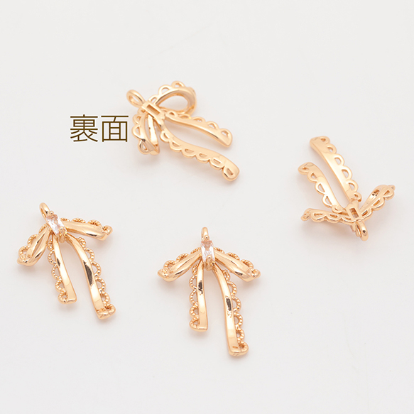 ジルコニアチャーム りぼん レース風 ストーン付き リボンチャーム メタルチャーム 約13.5×20mm(2ヶ)