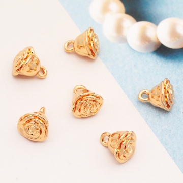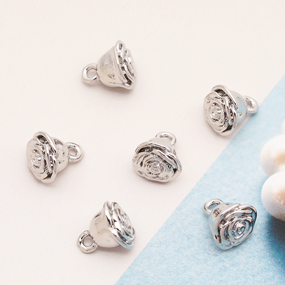 メタルフラワーチャーム ローズ 薔薇 お花 ミニフラワー フラワーチャーム メタルチャーム 約8×9mm(4ヶ)
