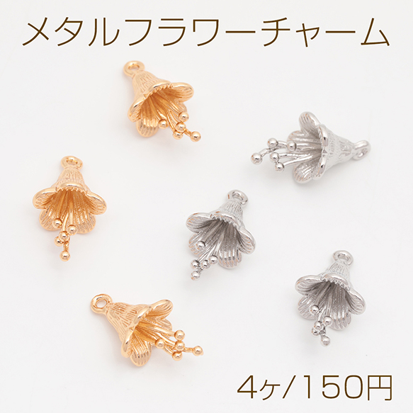 メタルフラワーチャーム 立体 お花 ミニフラワー フラワーチャーム メタルチャーム 約11×19mm(4ヶ)