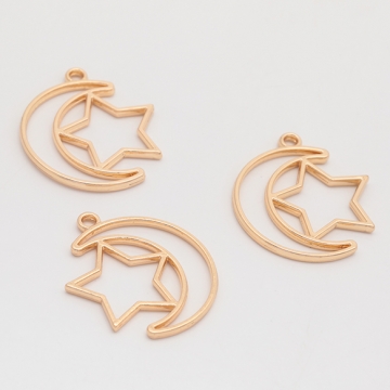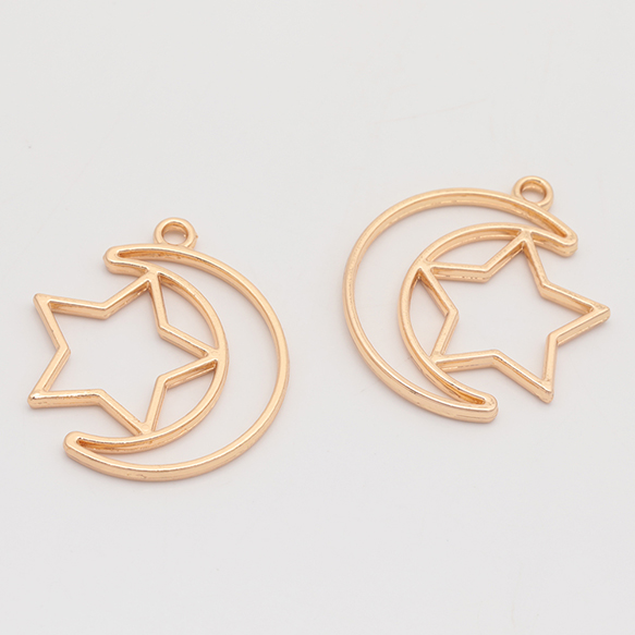 メタルフレームチャーム 月と星 宇宙チャーム UVレジン メタルチャーム 約23×28mm(4ヶ)