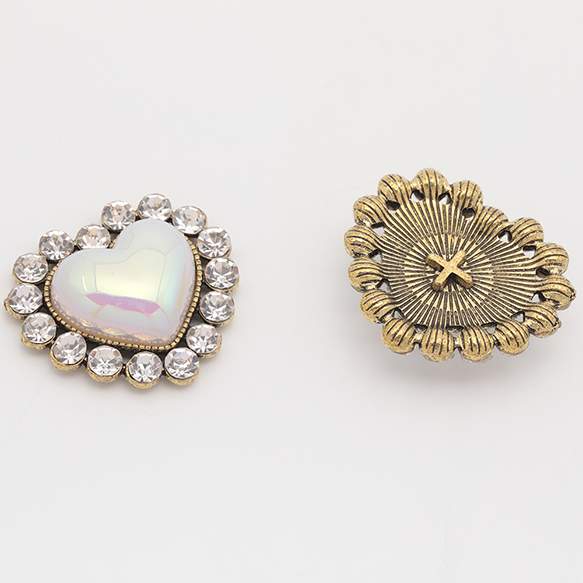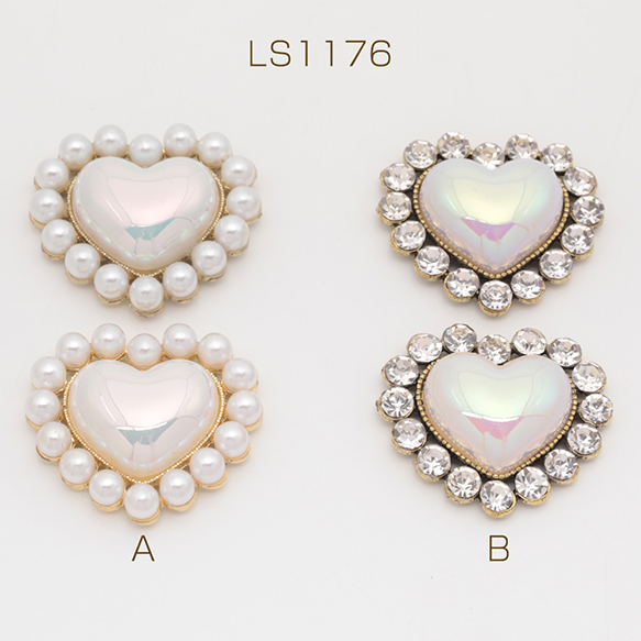 樹脂貼付けパーツ パール風 ハート ラインストーン付き デコパーツ 貼り付けパーツ 約28×32mm(1ヶ)