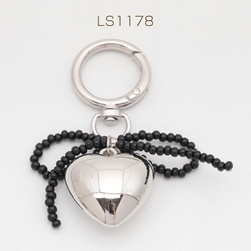 キーホルダー ハート ビーズリボン ガラスビーズ編み ロジウムカラー カラビナ付き 約7cm(1ヶ)