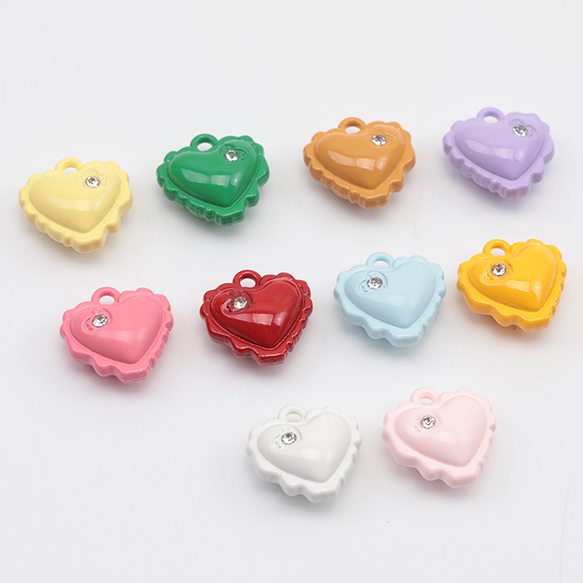 ハートチャーム カラフル エポ ハート ラインストーン付き ぷっくり 立体 メタルチャーム 約12×12mm(2ヶ)