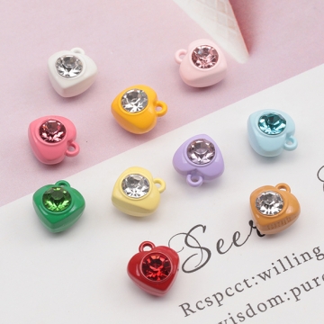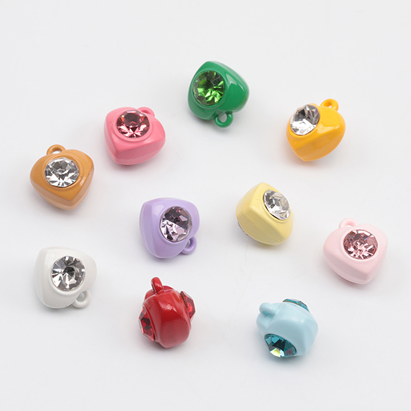 ハートチャーム カラフル エポ ハート 一粒 ガラスストーン付き メタルチャーム 約10×11mm(2ヶ)