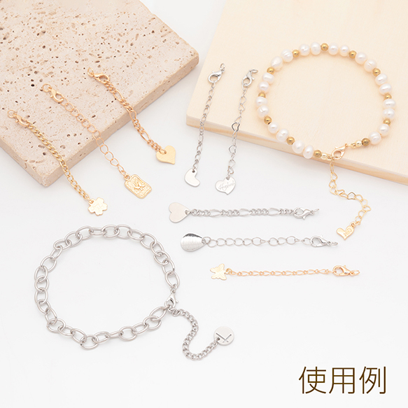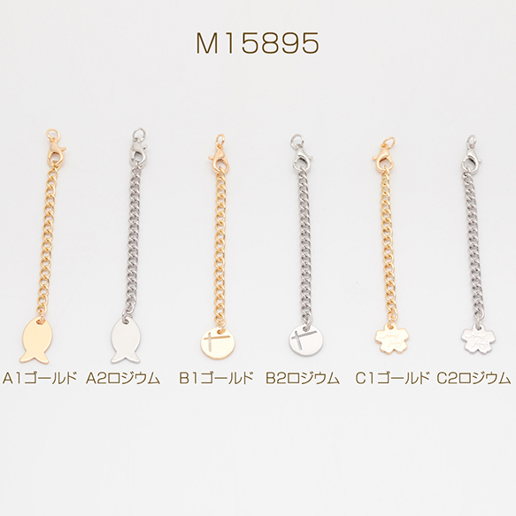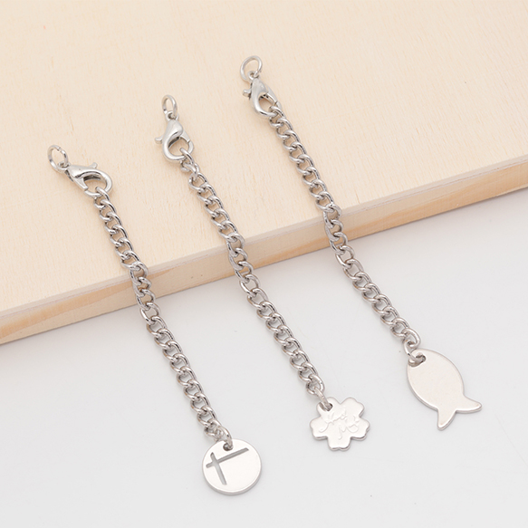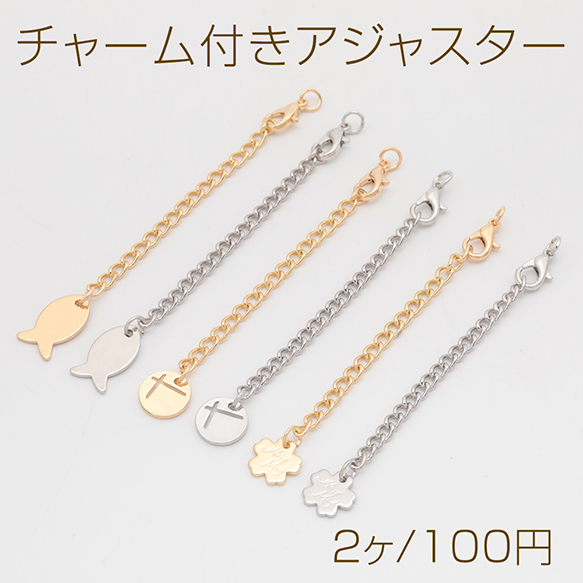 チャーム付きアジャスター サカナ・ラウンド・フラワー ブレスレット/ネックレス延長チェーン カニカン付き 全6種(2ヶ)