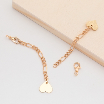 チャーム付きアジャスター ハート デザインチェーン ブレスレット/ネックレス延長チェーン カニカン付き 約6.5cm(2ヶ)