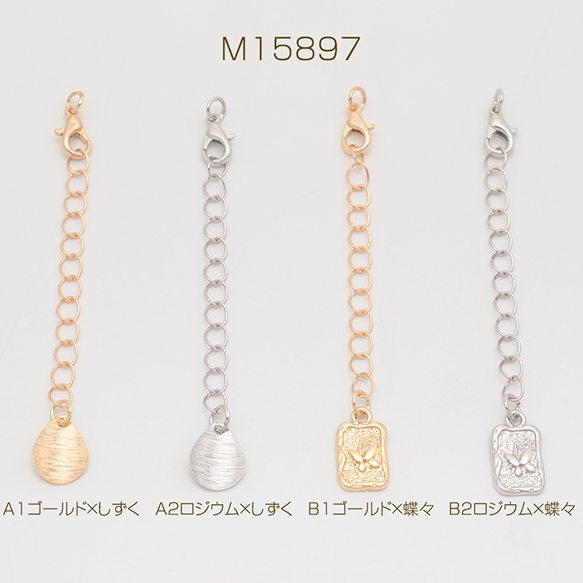 チャーム付きアジャスター 蝶々・しずく ブレスレット/ネックレス延長チェーン カニカン付き 全4種(2ヶ)