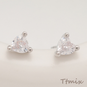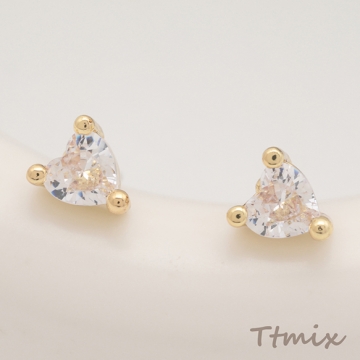 デザインピアス ハート 一粒 ジルコニア ストーン付き キャッチ鉄製 ジルコニアピアス 約4.5×5mm(4ヶ)