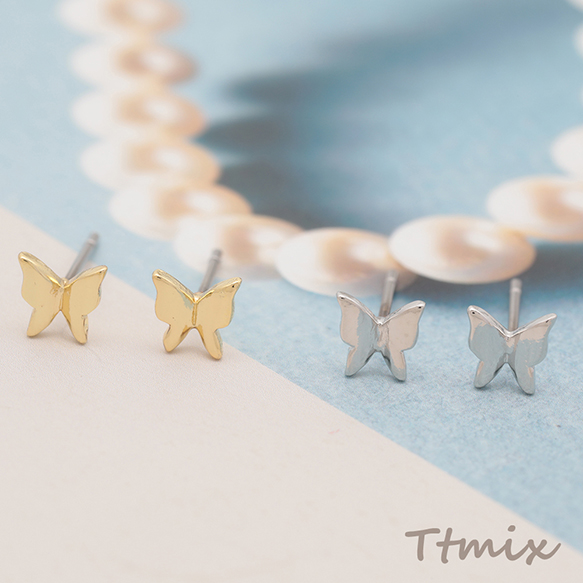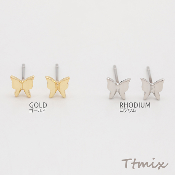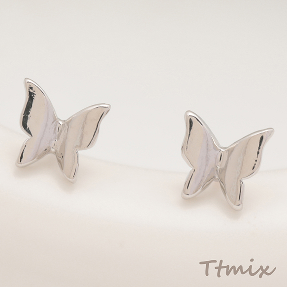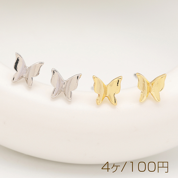 デザインピアス ちょうちょ 蝶々 キャッチ鉄製 メタルピアス 約5×5mm(4ヶ)