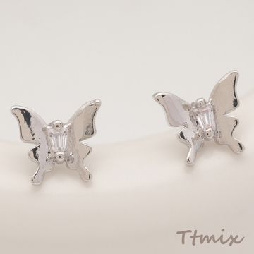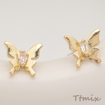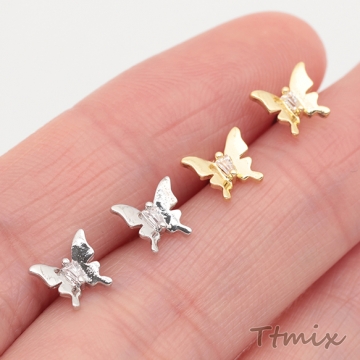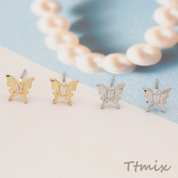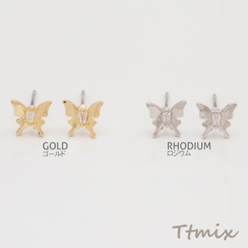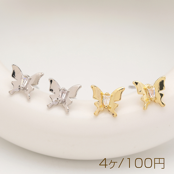デザインピアス ちょうちょ 蝶々 一粒 ジルコニア ストーン付き キャッチ鉄製 メタルピアス 約6.5×7mm(4ヶ)