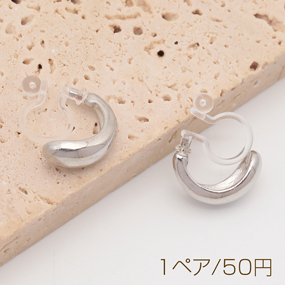 デザインピアス ノンホールピアス C字 ポスト樹脂製 ピアス穴不要 メタルピアス 約5×13mm(1ペア)