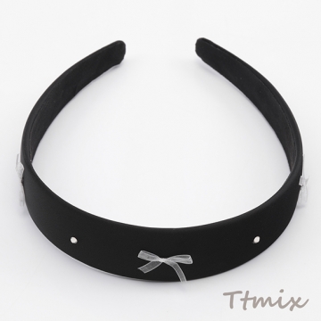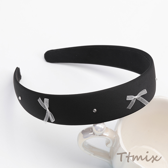 カチューシャ リボン&ラインストーン シンプル ブラック ヘッドバンド ヘアアクセサリー 約幅3cm(1ヶ)