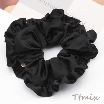 シュシュ ひらひら レース シンプルで可愛い ブラック 髪飾り 髪留め ヘアゴム ヘアアクセサリー(1ヶ)