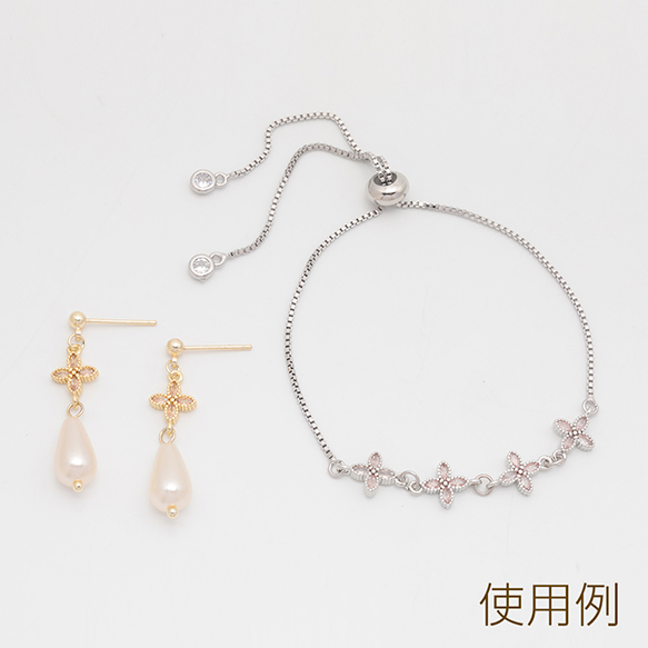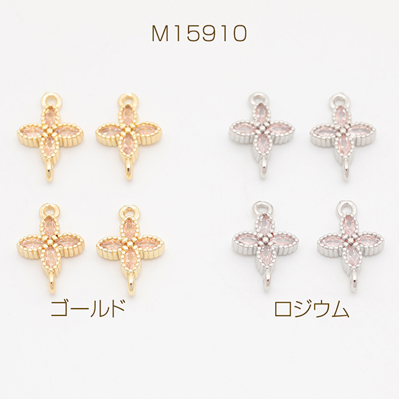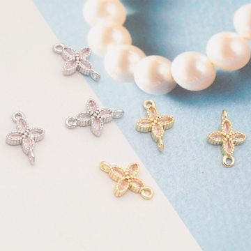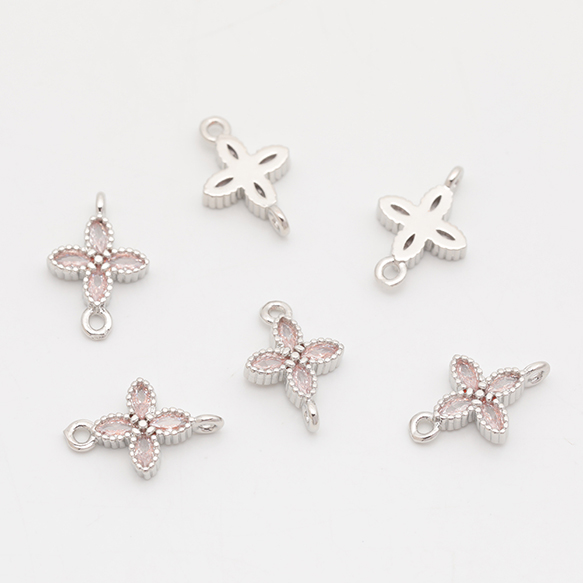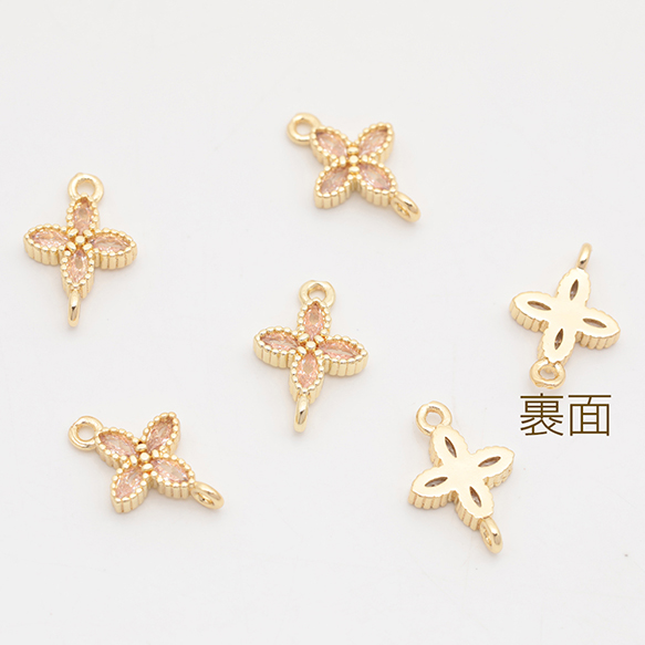 コネクターチャーム 四つ葉 クロス ジルコニア ストーン付き メタルチャーム 約8×12mm(2ヶ)