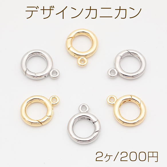 デザインカニカン カラビナ カン付き サークル 光沢感 エンドパーツ 基礎金具 留め具 約12×15mm(2ヶ)