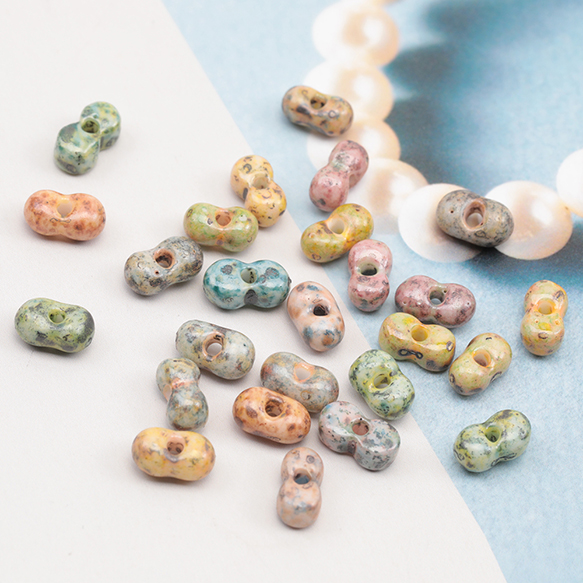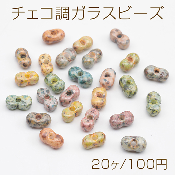 チェコ調ガラスビーズ ピーナッツ型 チェコガラス風 アンティーク風 カラーランダム 約4.5×8mm(20ヶ)
