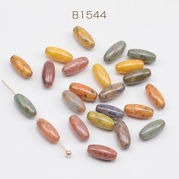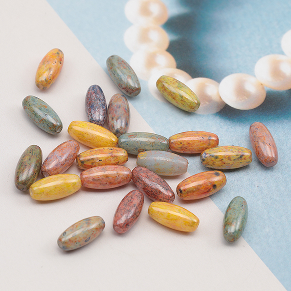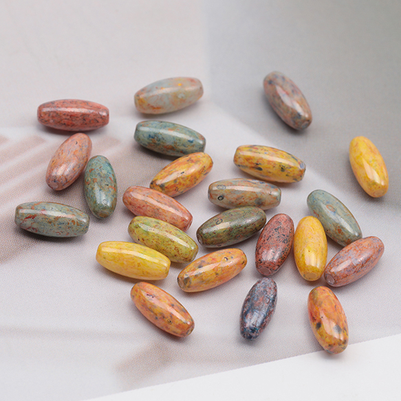 チェコ調ガラスビーズ ロングオーバル チェコガラス風 アンティーク風 カラーランダム 約4×10mm(20ヶ)