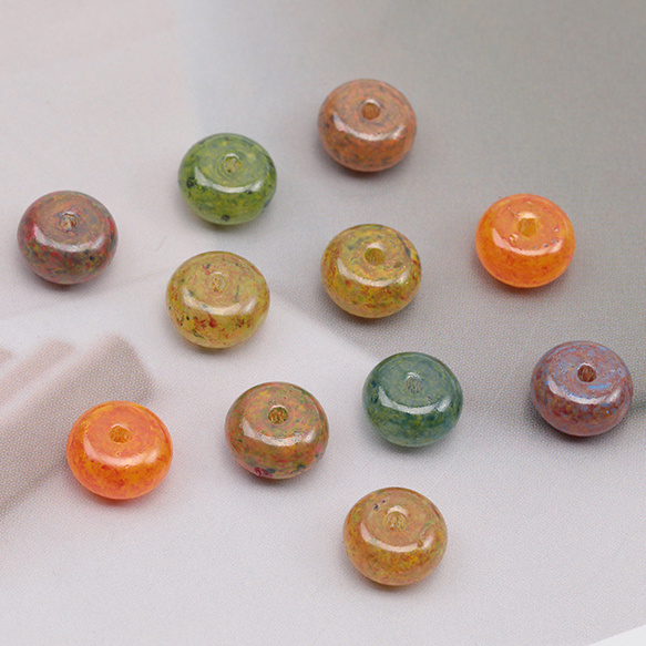 チェコ調ガラスビーズ そろばん型 ソロバンビーズ チェコガラス風 アンティーク風 カラーランダム 約5×8mm(15ヶ)