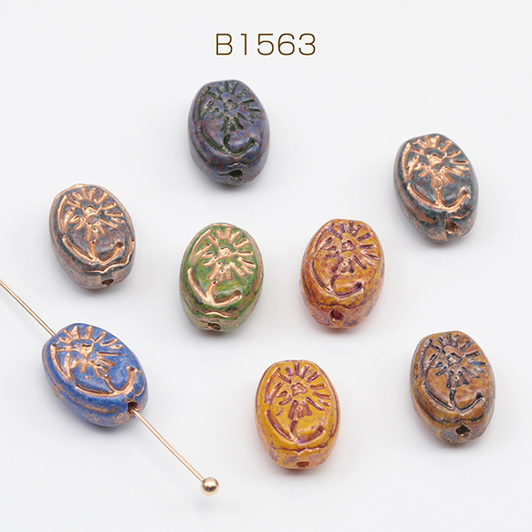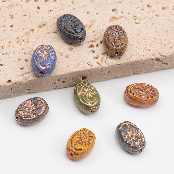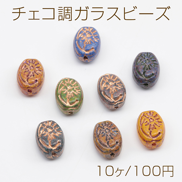 チェコ調ガラスビーズ 花模様 オーバル チェコガラス風 アンティーク風 カラーランダム 約8×12mm(10ヶ)