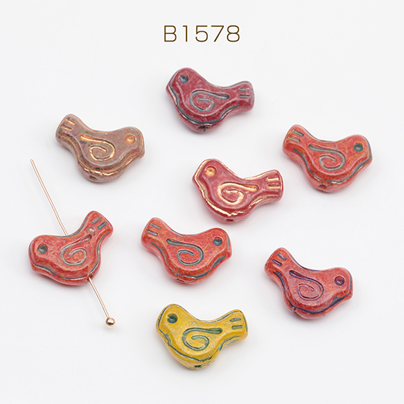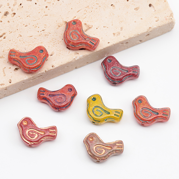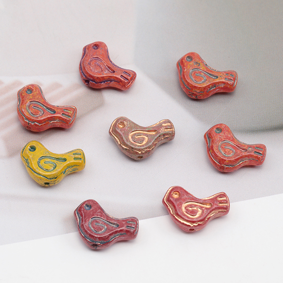 チェコ調ガラスビーズ ことり 小鳥 チェコガラス風 アンティーク風 カラーランダム 約12×16mm(10ヶ)