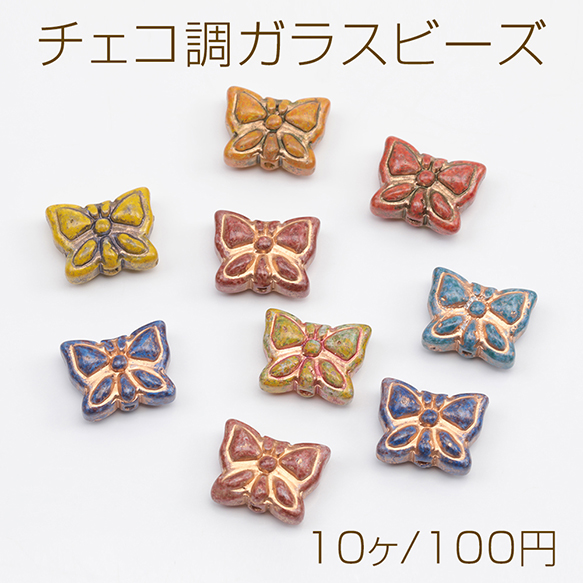 チェコ調ガラスビーズ ちょうちょ バタフライ 蝶々 チェコガラス風 アンティーク風 カラーランダム 約11×14mm(10ヶ)