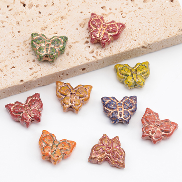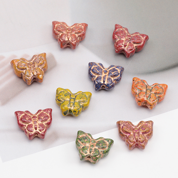 チェコ調ガラスビーズ ちょうちょ バタフライ 蝶々 チェコガラス風 アンティーク風 カラーランダム 約12×15mm(10ヶ)