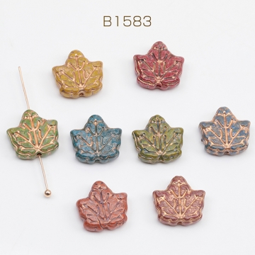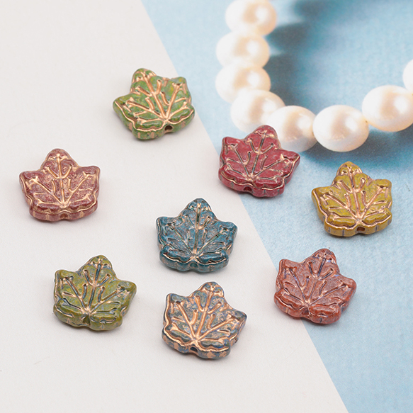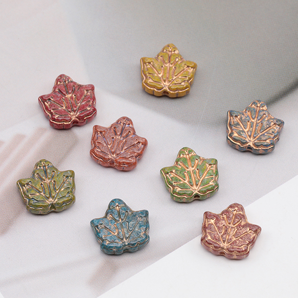 チェコ調ガラスビーズ カエデの葉 リーフ チェコガラス風 アンティーク風 カラーランダム 約12×13mm(10ヶ)